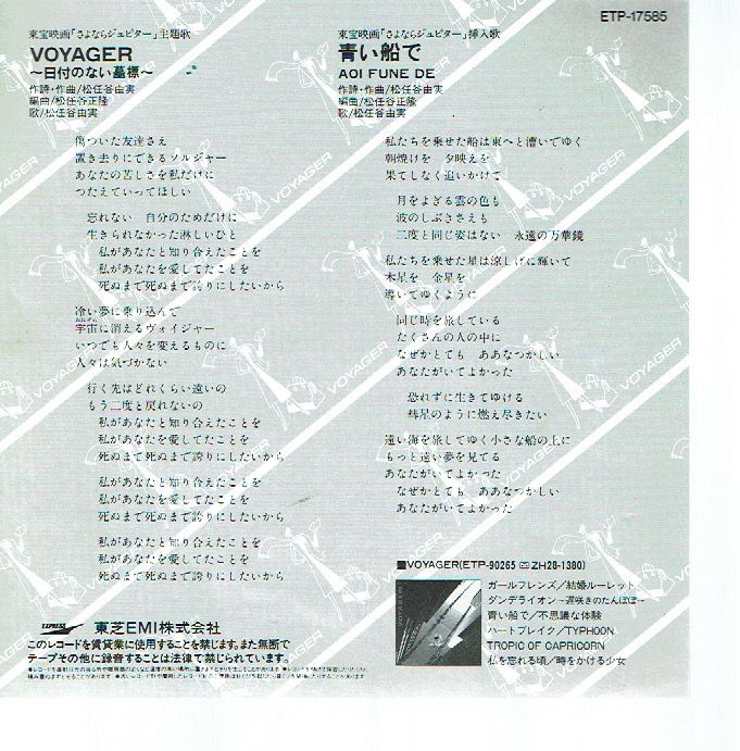 松任谷由実 / ボイジャー / 青い船で