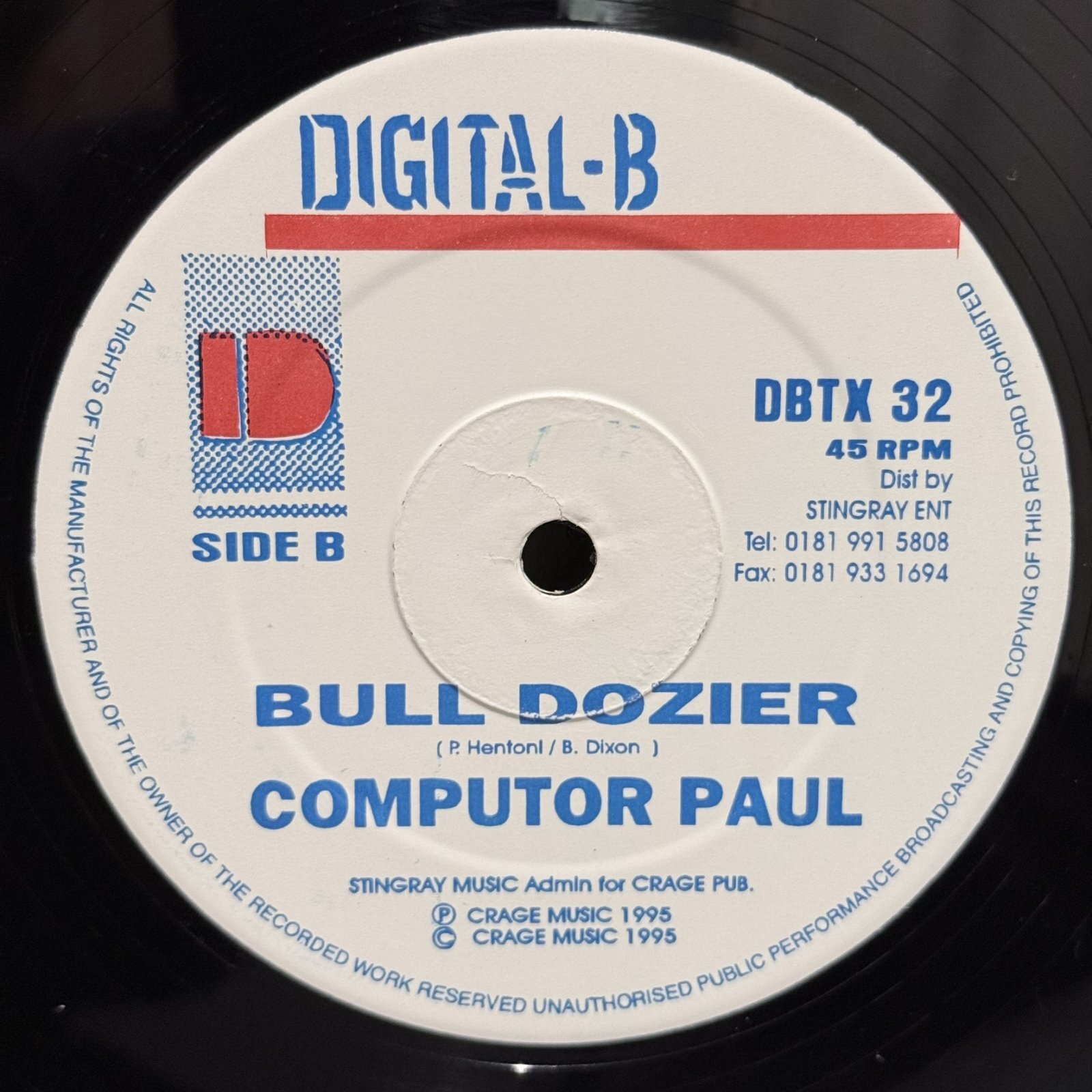 COMPUTOR PAUL制作"BULL DOZIER"riddim(Terry Ganzie "RAGGA RAGGA"オケ)。