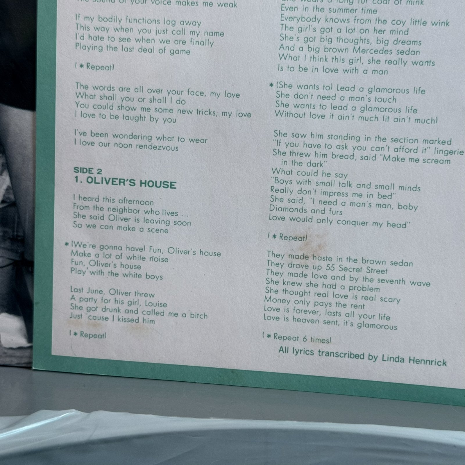Side 2: Oliver's House / Next Time Wipe the Lipstick Off Your Collar / The Glamorous Life